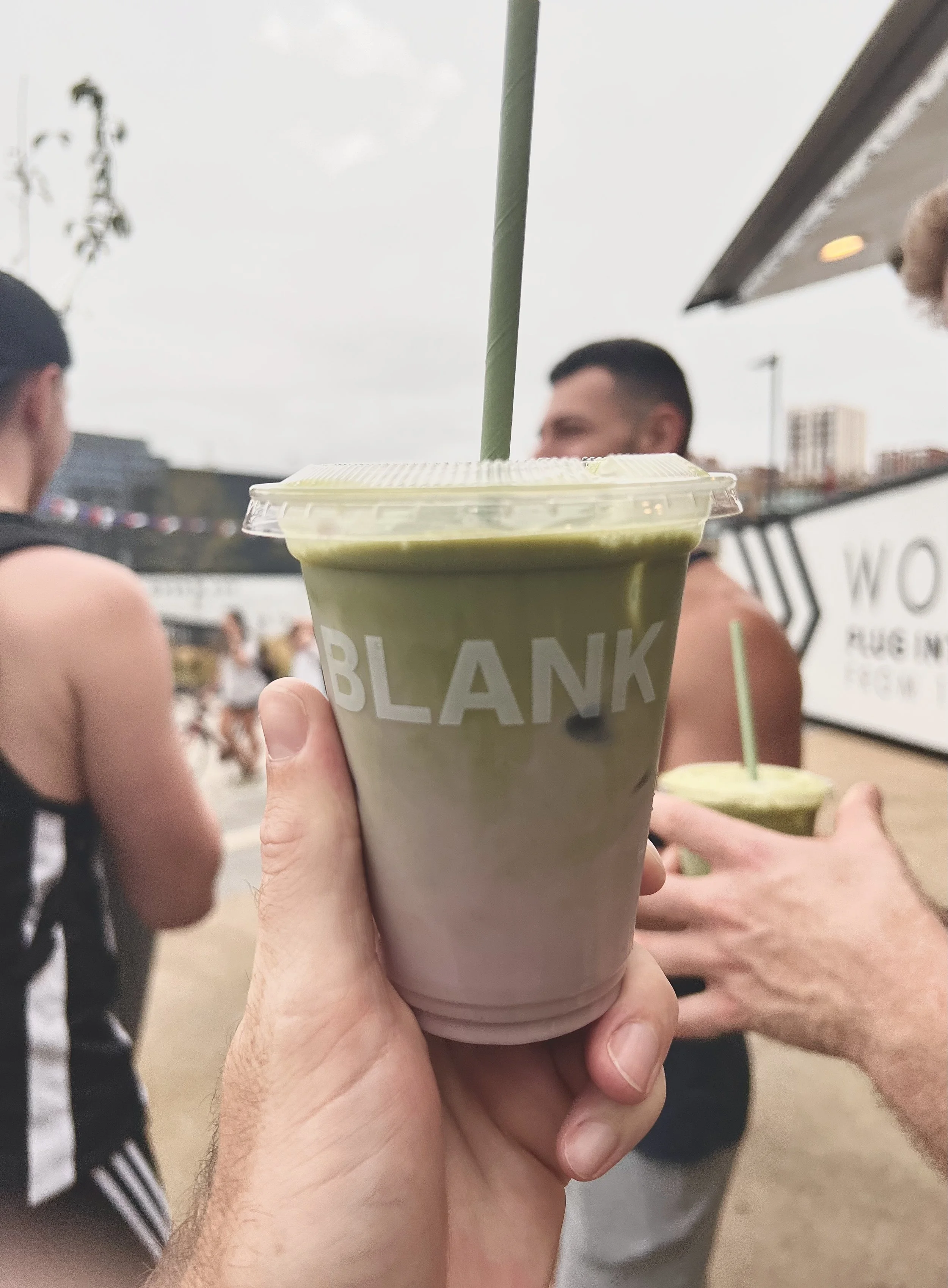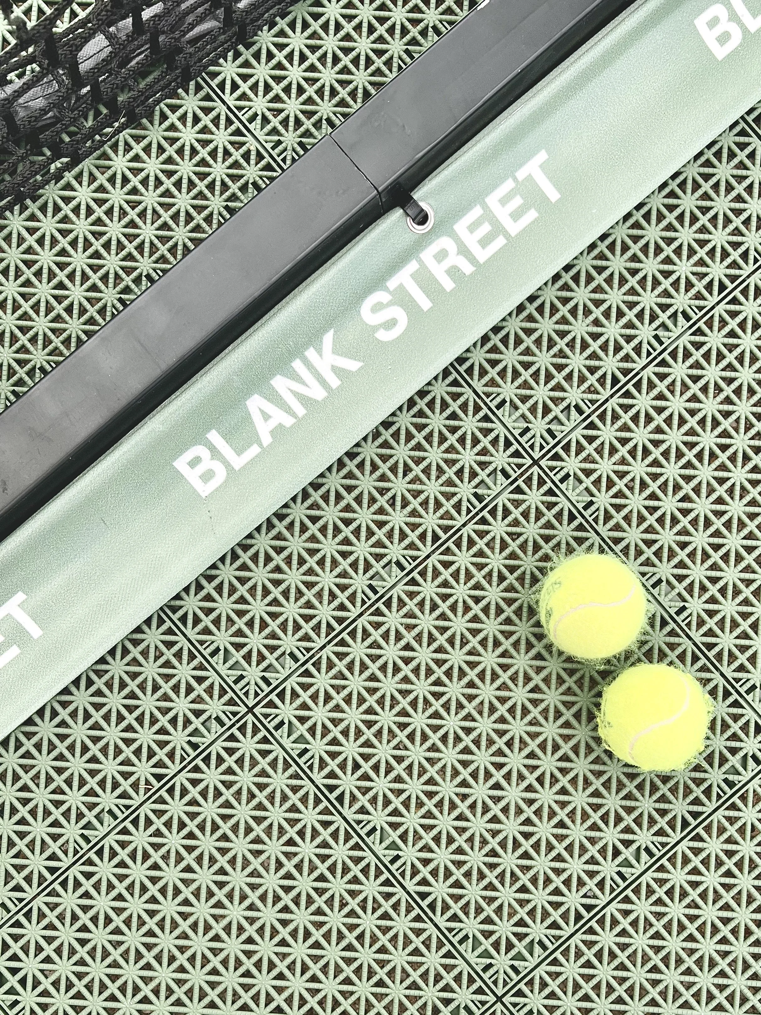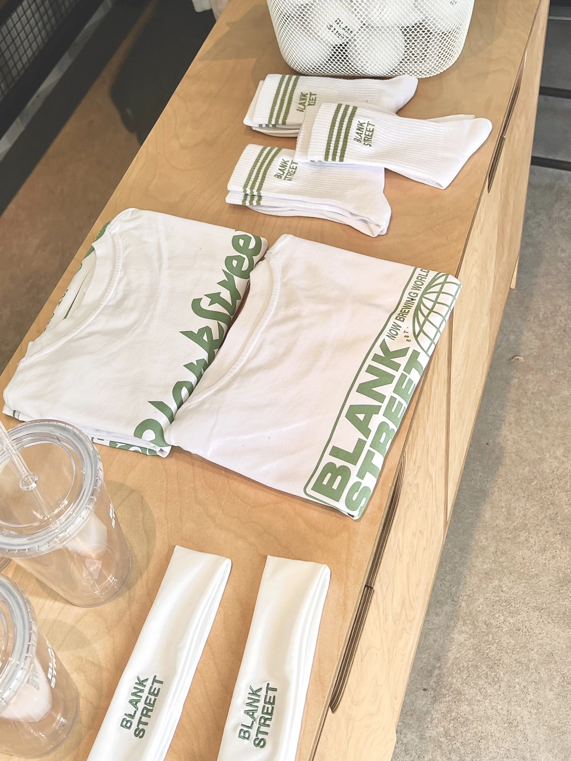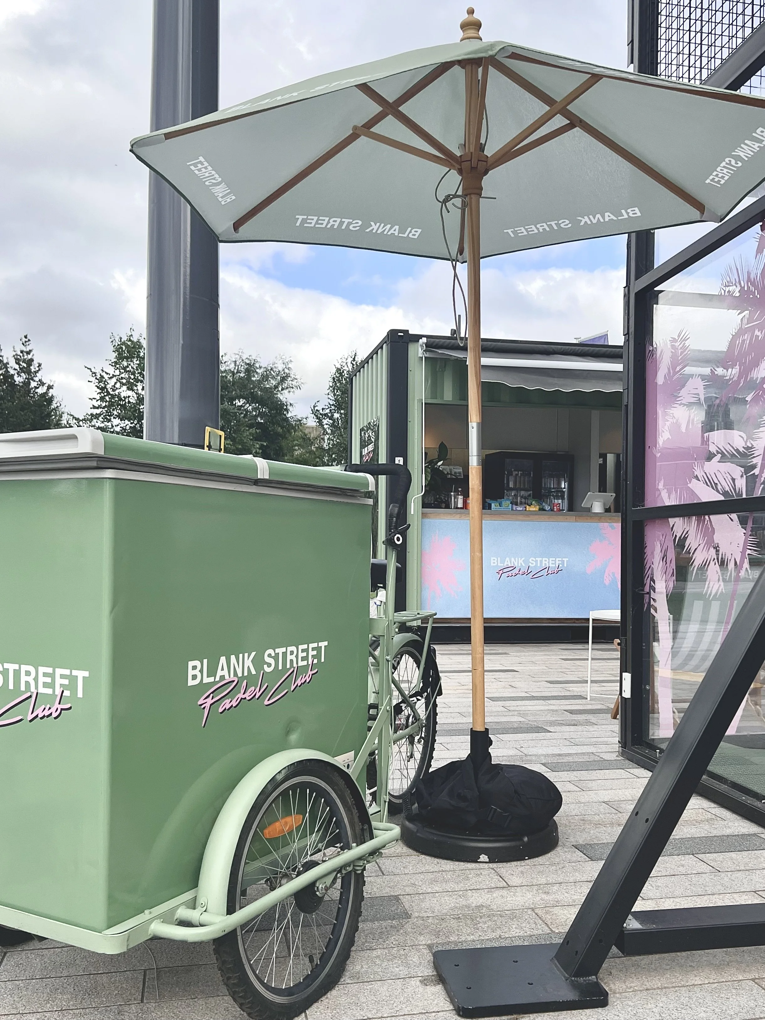 as a recent fan of padel, I couldn’t resist going to play at the popup court that coffee chain blank space have installed. serving Palm Springs, Miami neon, 90s sports club vibes in their signature green, contrasted by pink palm tree graphics and branded merch to compliment.